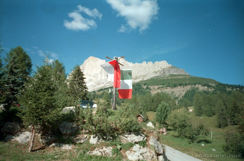 by przez równie wąską (śliczną) dolinę przerodzić się w podjazd pod przełęcz Costalunga (wszystko było by super gdyby nie tragicznie gęsty ruch). Dolina jest prześliczna. Wąska na szerokość drogi i potoku a po bokach urwiska skał do góry na jakieś 100 metrów…Podjazd nas nieco zaskakuje, ale wjeżdżamy. Na przełęczy jemy lody za ok. 13 zł. Zjeżdżamy, a podczas zjazdu jeden Carabinieri omal nie przejeżdża Łukasza. Po zjeździe wpada mi (Tomek) w oko jeden dom. Nie widać do niego dojazdu ale uparcie twierdzę, że dzisiaj tam będziemy spać. Znajdujemy dojazd, po pewnych perturbacjach językowych, najpierw gospodarze nas odsyłają na pole namiotowe, a po chwili wołają z powrotem. Dość zdziwieni wracamy, na podwórze wychodzi do nas „głowa rodziny” w postaci 70-letniej kobiety która z dostojnym „Polonia” na ustach wręcza nam klucze do domku ogrodowego. Potem dostajemy zaproszenie na kawę (mooocne espresso). Siedzimy przy stole z tłumem Włochów, z których tylko jedna kobieta mówi trochę po angielsku, a cała reszta chce z nami koniecznie porozmawiać :-). Przemiła, rodzinna atmosfera, wszyscy się śmieją i przekrzykują nawzajem. Italia.