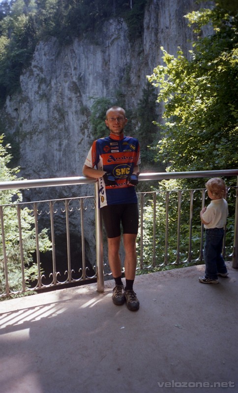 Od rana świeci słońce. Od początku mamy ciąg dalszy wczorajszego podjazdu, ale po pierwszym kilometrze przy drodze rosną tak smaczne czereśnie, że wynagradzają nam wszelkie trudy. Aż dziwne że oni nic z nimi nie robią… Po kilku kilometrach okazuje się, że zaplanowana trasa jest nieprzejezdna – z opisu mieszkańców wsi dowiadujemy się – a może raczej domyślamy – że w lesie jest poligon wojskowy, normalne, że nie ma go na naszej mapie. Zbija nas to trochę z tropu, ponieważ objazd ma jakieś kilkanaście kilometrów, no ale skoro nie ma wyjścia… Pierwsze kilometry są spokojne, ale potem zaczyna się podjazd – z początku 12 %. Myśląc, że skończy się za najbliższym zakrętem, przejeżdżamy prawie 7 km. Wreszcie wyjeżdżamy z lasu i zostajemy nagrodzeni solidnym, kilkukilometrowym zjazdem. Pojawiają się pierwsze ostańce wapienne – znak, że wjeżdżamy do Morawskiego Krasu. Po podjeździe z kilkoma serpentynami podjeżdżamy do „propasti” Macocha (taka malutka przepaść o głębokości 138 m), ale okazuje się, że bilety do jaskini dostępne są dopiero na 16.30 (jest 13.00). Troszkę zdenerwowani robimy kilka fotek i jedziemy dalej. Początkowo jedziemy fantastyczną wąską dolinką krasową, potem od Blanska wyjeżdżamy na główną trasę, ale cały czas jedziemy w przyjemnym cieniu. Zaczyna się dłuższy podjazd, ale umilamy go sobie zjadając niewiarygodnie tanie lody w jednej wsi – jakieś 600 ml „na łebka”. Tak pokrzepieni ruszamy dalej – jak się okazuje droga robi się coraz bardziej uciążliwa – ciągłe podjazdy i zjazdy – nawet do 14%. W pewnym momencie kończy nam się picie, a na złość przez 7 km ostrego podjazdu nie ma gdzie napełnić bidonów. Dopiero po dłuższym czasie znajdujemy wieś i sklep. Po odpoczynku jest już łatwiej, droga staje się bardziej płaska jedziemy wierzchowiną, i dopiero pod koniec dnia czeka nas mały zjazd do Velkiej Bites. Mamy małe problemy z wyjechaniem z miasta (wcale niedużego), i już jedziemy w kierunku noclegu. W Novych Sadach pierwszy napotkany człowiek kręci nosem na pytanie o możliwość rozbicia namiotu u niego, ale za to wysyła nas nad rybnik…. jak się okazuje staw 🙂 Miejsce na nocleg nad stawem jest ładne, gdyby nie to że staw jest jakieś 300 metrów od autostrady Praga – Brno. Ukołysani szumem silników ciężarówek zasypiamy…