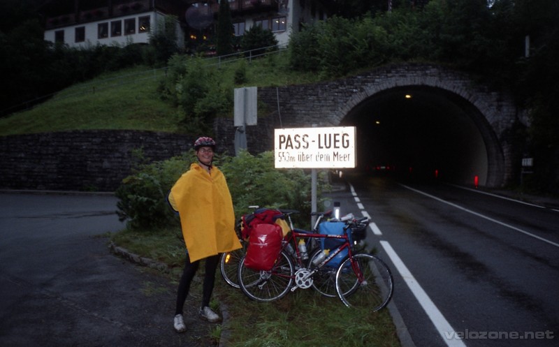Po deszczowej i burzowej nocy, ranek … deszczowy. Wyjeżdżamy dopiero o 11. Zbieramy się bardzo niechętnie (poprzedniej nocy nie było możliwości zjedzenia ciepłej kolacji), zjeżdżamy na dworzec, do Billi na zakupy i ruszamy w kierunku Salzburga. ścieżka początkowo wiedzie zboczami doliny Salzach potem terenem wzdłuż rzeki. Zatrzymujemy się w Bishofshofen, żeby zobaczyć jedną z Czterech Skoczni. Cały czas pada. Jedziemy całkiem ładnym przełomem rzeki, ale w zasadzie nas to nie zachwyca, ponieważ pogoda jest tragiczna. Zdobywamy przełęcz Lueg (!) 553 mnpm. Zjeżdżamy z przełęczy i naszym oczom ukazuje się dolina z coraz mniejszymi górami. Czuć, że powoli, powoli, wyjeżdżamy z Alp. Zaczyna padać mocniej i lekko poddenerwowani szukamy noclegu w stodole gdyż „unser Zelt ist nass”. Znajdujemy przyjazną rodzinę niedaleko Kuchl. Dostajemy spanko w garażu, a na dodatek świeże mleko – gospodarze są jakimiś liderami w lokalnym przemyśle mleczarskim 🙂
