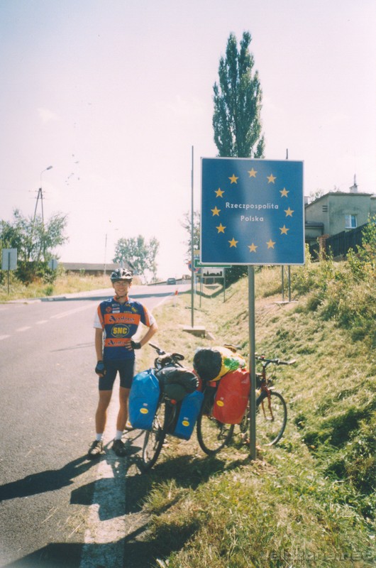 Nie mogąc się doczekać momentu powrotu do domu wstajemy chyba najwcześniej – 5.00 jesteśmy na nogach. Jemy ostatnie resztki musli + kaszka + rodzynki. I w drogę. Początkowo jedziemy tą samą trasą co „w te” ale szybko decydujemy jechać do Marklowic zamiast do Chałupek. I to jak się później okazuje nie był chyba najszczęśliwszy pomysł. Już na 10 km gubimy drogę, a później musimy pytać kilka razy. Sytuację podgrzewa fakt iż w kierunku w którym chcieliśmy jechać nie ma żadnych dróg (NE), tylko co kilka kilometrów musimy jechać najpierw na północ potem na wschód, północ, wschód, północ, wschód, północ, wschód… idzie oszaleć. Towarzyszą nam przy tym ciekawe widoczki przy których nasz śląsk wymięka. Jak ktoś myśli że widział smog, to niech jedzie do Ostravy :-). Po przejeździe przez Havirov i Karvine zbliżamy się wreszcie do granicy. Tuż przed granicą kupujemy za resztki koron czekoladę studencką, a co 🙂 Ku naszemu rozczarowaniu celnik nawet nie pyta skąd wracamy :-(. IIIIII…… Niebieska tablica z 12 gwiazdami i napisem Rzeczpospolita Polska. Nareszcie. Ciężko opisać wzruszenie. Uprzedza fakty mój telefon komórkowy, który już 10 km przed granicą pokazuje miły napis „IDEA -MILEGO DNIA” W pierwszym sklepie w Zebrzydowicach robimy zakupy…. i… okazuje się przy kasie, że w używanym portfelu mamy euro, franki, korony i ani złotówki. Pani przy kasie dziwnie się patrzy gdy szukamy w sakwach peelenów, ale w końcu jest ok. Zaraz potem kupujemy również GW żeby dowiedzieć się co w kraju, czy Lepper już przejął władzę itp… Droga do domu niesie nas jak na skrzydłach, mimo przejechanych kilkudziesięciu kilometrów jedziemy niemal jak dzicy. Ostatni posiłek jemy w Kobiórze, i tamże decydujemy jechać na przestrzał, czyli główną drogą przez Tychy +fragment drogi szybkiego ruchu do Katowic. średnia prędkość utrzymuje się na tym fragmencie trasy grubo powyżej 25 km/h Co jakiś czas dostajemy smsy kontrolne z pytaniem gdzie jesteśmy. Tuż przed DG dostajemy konkretne wskazówki, którędy mamy jechać. Pamiątkowe zdjęcie przy tablicy wjazdowej…. ii…. od początku wjazdu jesteśmy pilotowani przez samochód, razem zresztą z sesją zdjęciową. Pod blokiem czeka na nas transparent, brama nad jezdnią i fajerwerki, nie mówiąc o chlebie, soli wieńcach laurowych itp itd. Co jeszcze powiedzieć? Alpy 2004 Tour można uznać za zakończony. Zostają niezapomniane wrażenia i chęć na JEESZCZE!!!!!!