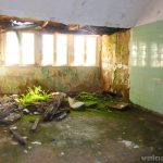 Z piwnicy podziemnym łącznikiem przechodzę do sąsiedniego budynku, a tam w pomieszczeniach rosną… paprocie i drzewa. Budynek był chyba kotłownią bo pozostał otwór na zrzut węgla. Z ciekawych obiektów to widać, gdzie była stołówka (uwaga na szkło!) oraz.. kaplica z prosektorium. Wchodząc do środka nie mamy wątpliwości, że to właśnie to 🙂 Zaskakuje jednak fakt, że Armia Czerwona pozwoliła na funkcjonowanie kaplicy… W następnym budynku kinoteatr. Z tyłu zamknięty (niestety) oddział psychiatryczny. Kto oglądał „Małą Moskwę” zapewne kojarzy ten budynek 🙂