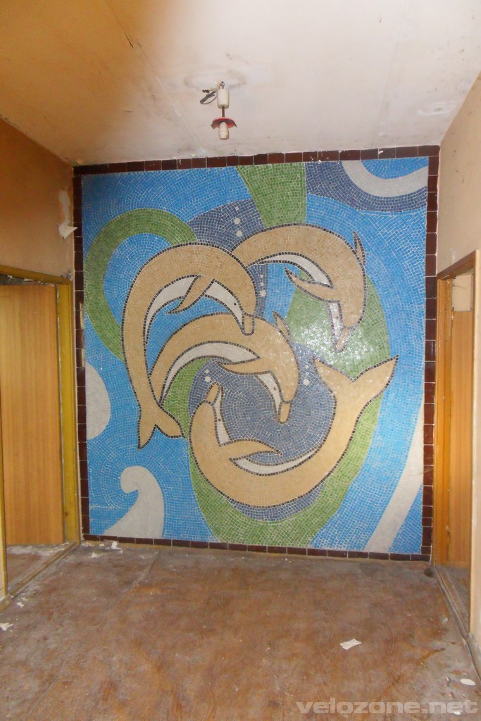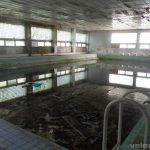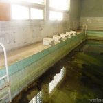 No i na koniec – perełka – basen. Najpierw wspinam się na dach zobaczyć jak to wszystko wygląda z góry, a potem do środka. Tam – przebieralnie, mozaika na wejściu i… 🙂 Rosjanie opuścili Legnicę w 1993 r., a w basenie… wciąż stoi woda. Nawet nie śmierdzi tak bardzo 😀 Oczywiście poziom dużo niższy niż powinien być, ale nadal widać, że jest głęboko. Niestety w basenie leżą tez śmieci typu krzesła.