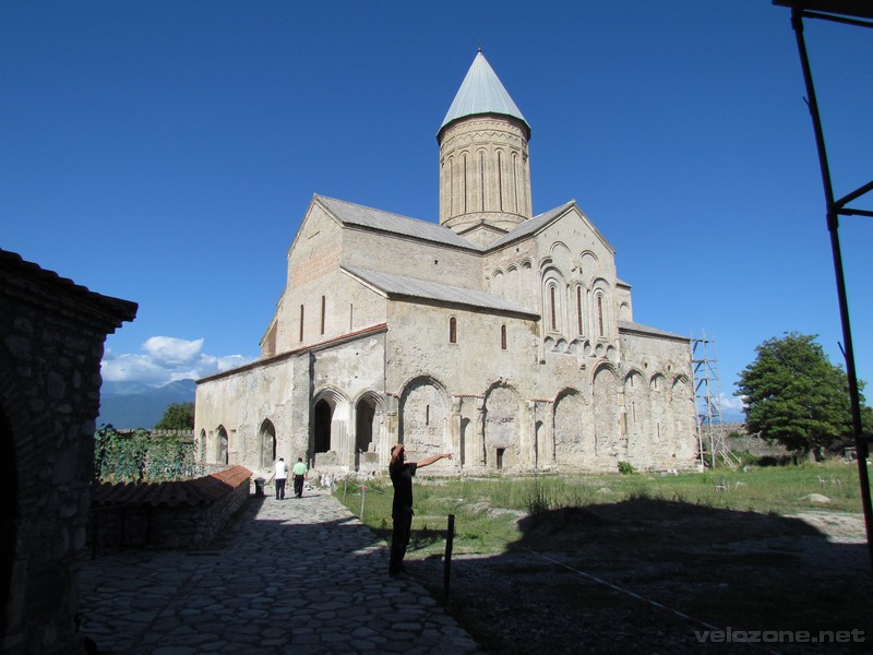 Kilka minut czekam na poboczu, ale nie zdążyłem się nawet porządnie zastanowić, gdy pojawia się marszrutka do Alaverdi. Wsiadam, i nie mam nawet chwili by się rozsiąść, bo do największej w Gruzji katedry jest raptem 2 kilometry. Kierowca za ten dystans nie chce ode mnie żadnej zapłaty. Wysiadam koło kompleksu katedralnego. Podziwiam kompleks klasztorny, zniszczony niemal doszczętnie wewnątrz przez Rosjan. Po zwiedzeniu klasztoru powracam w objęcia upału. Zdejmuję plecak, i próbuję złapać stopa. Po 10 minutach i kilku nieudanych próbach łapania stopa na dostrzegam starsze małżeństwo podchodzące do samochodu. Sami proponują mi podwiezienie. Ruszamy w kierunku Telavi. Pytam o możliwość wysadzenia w Ikalto. Zatrzymujemy się przy głównej drodze, skąd do kolejnego klasztoru jest jeszcze dwa kilometry. Na pożegnanie dostaję jeszcze chleb. Po drodze miejscowi proponują mi degustację wina, ale odmawiam. W klasztorze spotykam kilkoro Polaków. Z racji, że podróżują taksówką zwiedzając klasztory w okolicach Telavi, zabieram się z nimi, aby docelowo dojechać wieczorem do miasta. Po drodze mamy w planach zwiedzić jeszcze kolejne kościoły w Shuamcie. Nasz gruzińskie kierowca mknie bardzo szybko, jednak tuż przed zjazdem do lasu…. Okazuje się, że w baku nie ma już niemal benzyny. Kierowca wrzuca więc wsteczny bieg, i na oparach benzyny rusza w te pędy do najbliższej stacji benzynowej. Tankuje tyle, że kreska nawet nie drga ze stanu rezerwy, i jedziemy z powrotem. Klasztor położony jest w mrocznym lesie. Powoli zatrzymujemy się, i w tym momencie z mroku wyłania się kilkanaście starszych osób, które chcą nam sprzedać świece wotywne. Wkładają swoje ręce przez okno samochodu… Zupełnie jak zombie. Atmosfera jest niesamowita. Oglądamy zabytkowe klasztory, i wracamy do Telavi. Taksówkarz jest tak miły, że podwozi mnie pod wskazany adres. Wysiadam przy hostelu. Nie ma w nim wolnych miejsc, ale właścicielka słysząc, że ja tylko na jedną noc, lokuje mnie… w swoim salonie. Na tym kończy się dzień pełen wrażeń…