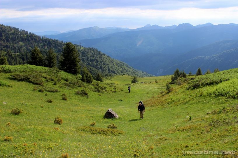 Oczywiście, jak można było przewidzieć, gdy już zeszliśmy do plecaków, założyliśmy kurtki, przepakowaliśmy się ponownie i zeszliśmy 100 metrów niżej do doliny okazało się, że już po deszczu nie ma ani śladu, i pogoda zrobiła z nas (nie po raz ostatni zresztą) idiotów. Ale żadnemu z nas nie chce się już drapać z powrotem do góry, kontynuujemy zatem marsz w dół. Po chwili dochodzimy do jedynego gospodarstwa w tej części doliny.
