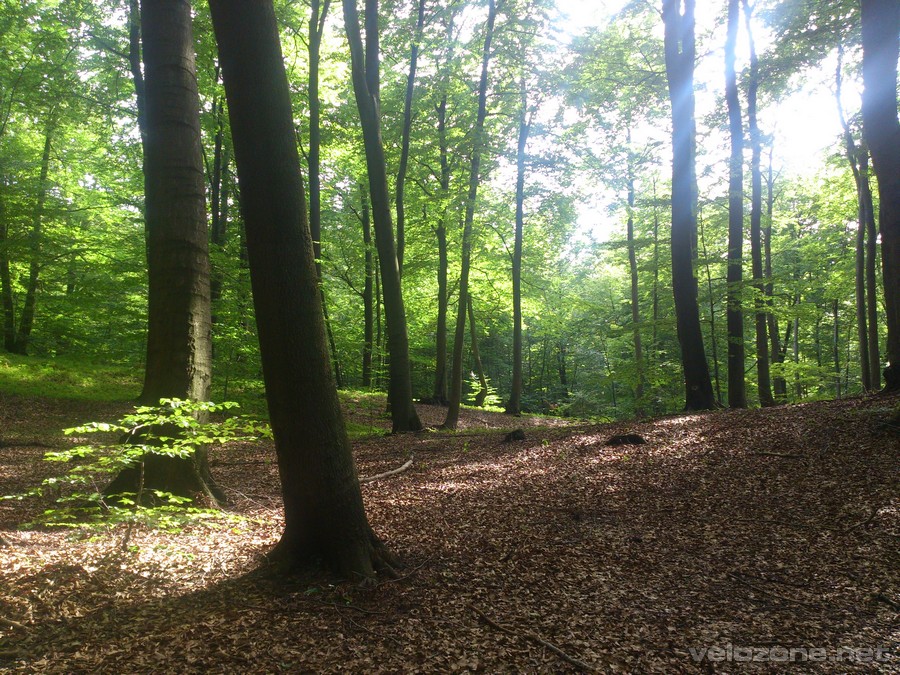 Po wyjściu ze skalnego miasta ścieżka prowadzi teraz łagodnie w dół. Wędrujemy najpierw wśród lasu bukowego, a po minięciu ostatniej skały ścieżka sprowadza nas ostro w piaszczystą dolinę porośniętą lasem sosnowym.