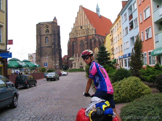 Pierwszy dzień postanawiamy zacząć podjeżdżając pociągiem do Kędzierzyna, ponieważ droga przez cały GOP nas średnio fascynowała. Po wyjściu z pociągu czekało nas od razu 30 km główną drogą w kierunku Głogówka, więc nie jest najciekawiej. Do tego pogoda jest nieprzyjemna, a nawet w Głogówku przez moment zaczyna kropić. Za Głogówkiem lepie się już wygodniej, ponieważ skręcamy na tzw. „wiochy”:-) ale za to pojawia się wmordewind, więc znów mamy powód do narzekań. W pewnym momencie na dodatek Tomek łapie gumę, więc jak można się domyślać nasze humory wcale się nie poprawiają. Po zmianie dętki i założeniu koła i sakw zauważamy, że opona jest tez przedarta. Po raz pierwszy przydaje się nam wtedy opona zwijana, którą wozimy ze sobą. A zatem znów trzeba zdejmować sakwy, koło… w sumie spędzamy tam około godziny. Po przymusowym postoju staramy się jak najszybciej dojechać do Nysy. Tam robimy zakupy i zwiedzamy Bazylikę przy Rynku. Z Nysy już mało ciekawymi drogami dojeżdżamy do Ziębic, które zaczynają się bardzo ciekawie, ale niestety nie ma czasu żeby je poznać bliżej. Nocleg znajdujemy za 1 podejściem u starszego pana, który jak się okazuje jest weteranem II wojny światowej, i opowiada nam o tym jak szedł z armią pieszo z Rzeszowa do Berlina….