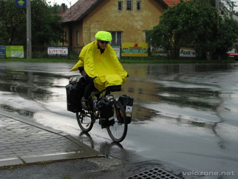 Dzień obudził nas deszczem, co nie było zaskoczeniem bo w nocy łomotało o namiot. Skutek tego był taki, że zamiast o 7 wyjechaliśmy o 9. Tak padało, że nie mogliśmy wyjść z namiotu, dobrze że wcześniej ręczniki zdjęliśmy i wsadziliśmy do środka bo nieźle by się wysuszyły. Mimo przeciwności losu wyjechaliśmy mając pod ręką żółte peleryny – i dobrze bo się przydały. W końcu, w połowie dnia wyjechaliśmy spod chmur deszczowych i przywitaliśmy słońce. Poprawiło nam to nastrój i zdecydowanie miało znaczenie przy zwiedzaniu Kromeriża – jego jasna starówka robiła wrażenie. Obejrzeliśmy z zewnątrz zamek w tymże (UNESCO). Mieliśmy dziś do przejechania 140 km, a spóźnienie poranne, ciągłe górki, podjazdy i zjazdy (typowoczeskie) sprawiły, że zabrakło nam 4 km do celu. Bardzo nużący dzień – krótkie zjazdy i zaraz podjazdy – krajobraz nie sprzyjał dziś pędzeniu na rowerze. Wszystko dobrze się skończyło, jakimś cudem. Gdy po godzinie szukania miejsca na rozbicie namiotu i straceniu nadziei staliśmy obok jakiegoś domu zastanawiając się nad swoim losem, podjechało doń dwoje ludzi, którzy pozwolili nam rozbić się na polu za domem, a ponadto. Dostaliśmy rohliki i domowej roboty dżem z rybiżu, czyli czarnej porzeczki.