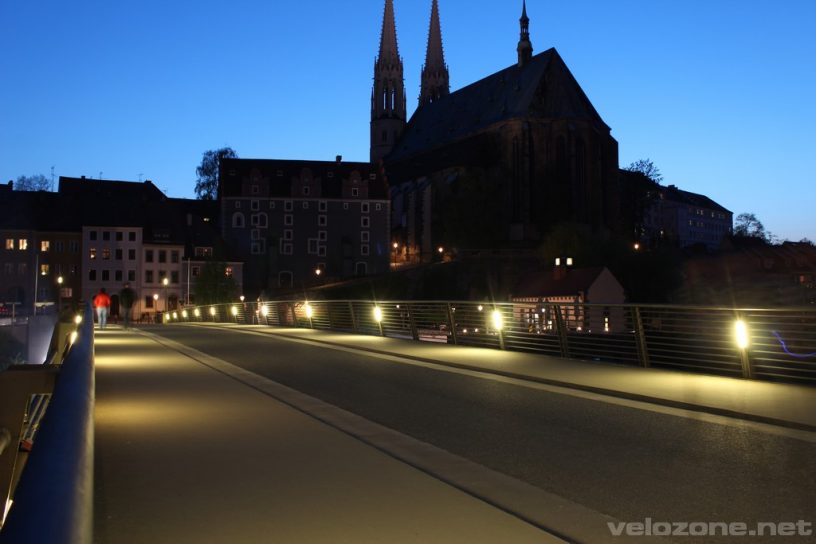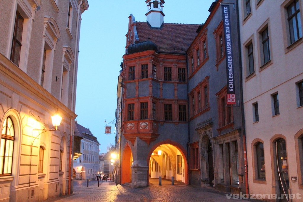 Krótki spacer po pięknych uliczkach Starego Miasta. Pierwszą rzeczą, która rzuca się w oczy jeszcze z polskiej strony są wieże kościoła pw. Piotra i Pawła. Udajemy się wąskimi, stromymi uliczkami na Rynek. Kolorowe fasady kamienic, arkady tworzą wieczorem niesamowity klimat. To miasto ma ogromny potencjał! Zresztą odkryli już niemieccy filmowcy, odkrywa Hollywood. Kręcono tu m.in. „Bękarty wojny”. Niestety „nasi” to trochę zepsuli… W najpiękniejszym miejscu Bruederstrasse widok psuje tło. Dokładnie na przedłużeniu zniżającej się do rzeki uliczce otoczonej wysokimi, bogatymi kamienicami widać… polskie wieżowce. Zastanawiamy się czy to przypadkiem „tak wyszło” czy świadome wyliczenia planistów 😀 Oglądamy z zewnątrz budynki ratuszów i inną drogą wracamy do Polski.